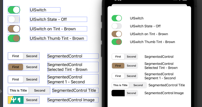 UISwitch, UISegmentedControl