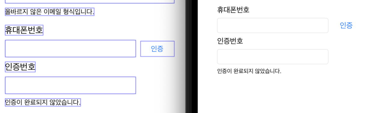 5. 휴대폰 번호 인증버튼을 누르면 인증번호 입력창이 아래 나오고, 타이머 보여주기