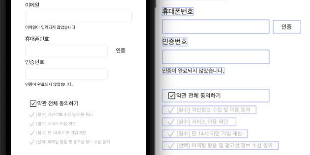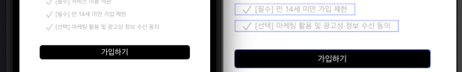 9. 약관 필수 동의 체크 버튼 및 텍스트