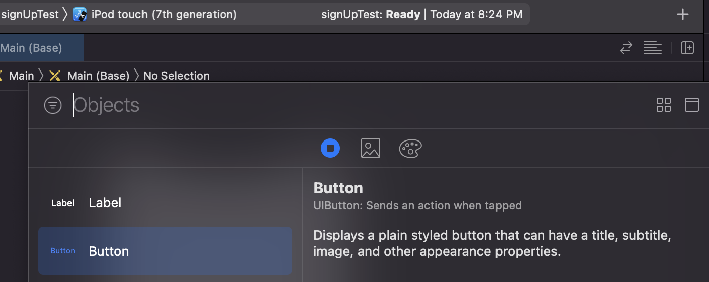 Xcode 오른쪽의 플러스버튼(+)을 클릭하면 Object Library 창이 뜬다