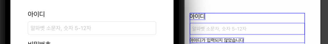 Text Field 아래 "아이디가 입력되지 않았습니다" 라는 label이 있는데, 사용자가 Text Field에 어떤 값을 입력하기 전에 해당 Label이 입력되어 있는 것이 이상한 것 같다