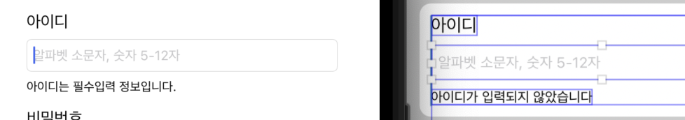 화면에서 Text Field 안에 "알파벳 소문자, 숫자 5-12자"가 보이는 것을 알 수 있다