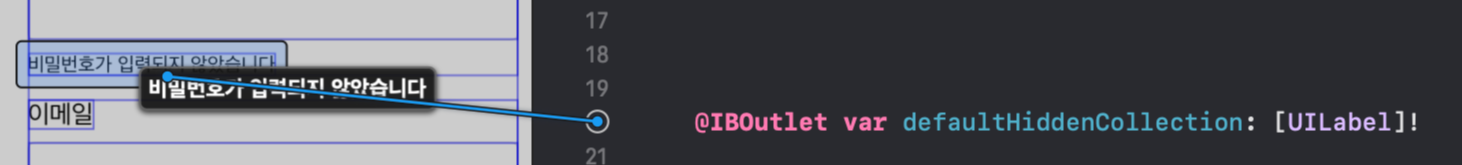 반복작업을 줄이기 위해서 각 Label들을 Outlet으로 각각 선언, connection 하는 것이 아니라 Outlet Collection으로 connection해서 한번에 숨김처리를 해보자