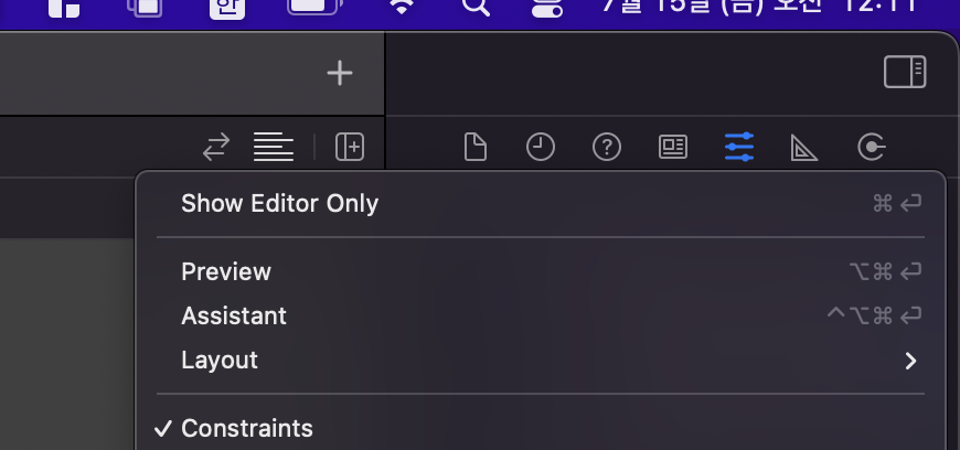 창을 띄우는 방법은 Object Library인 + 버튼 왼쪽 대각선 아래 단락표시된 버튼을 클릭한 후 "Assistant"를 클릭해준다