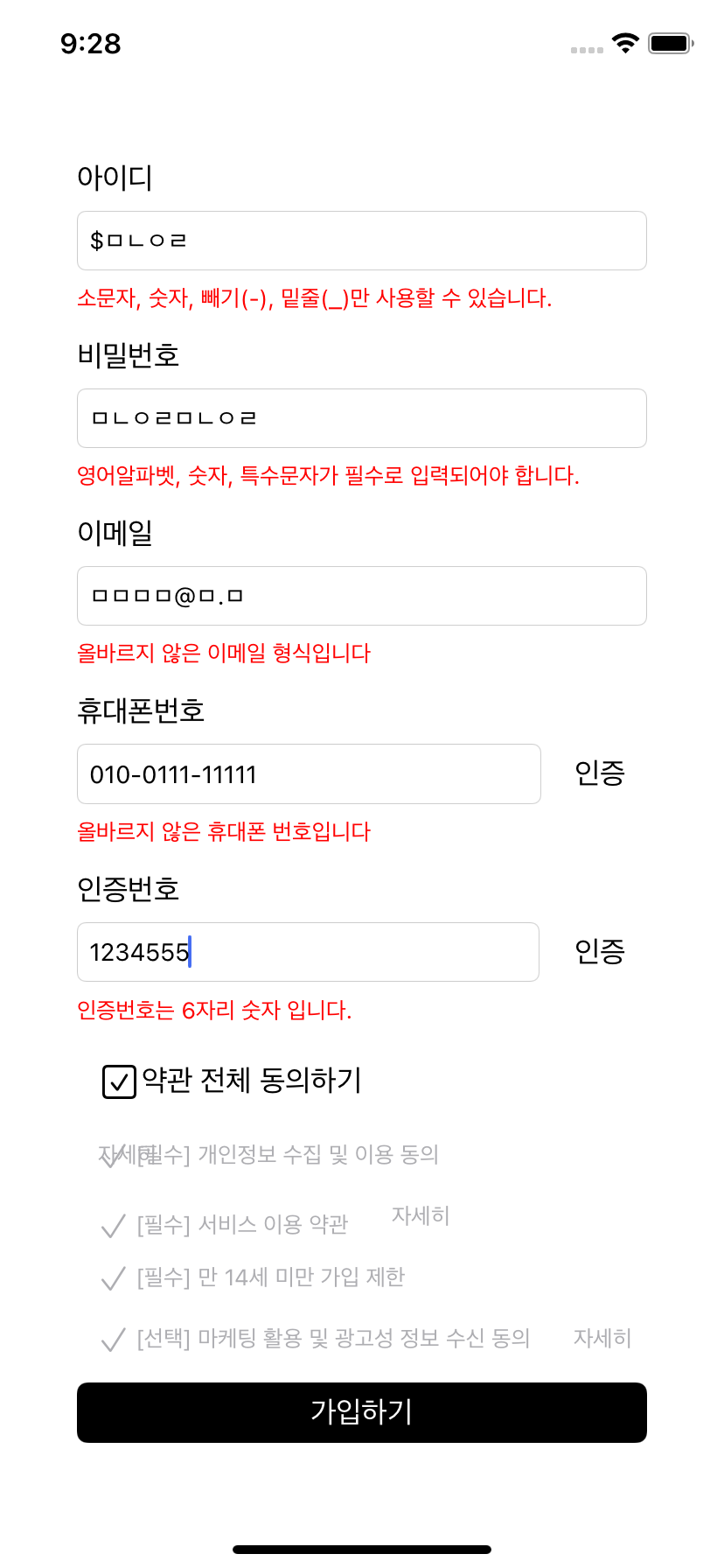 phoneNumberTextFieldDescription.text = "올바르지 않은 휴대폰 번호 입니다"