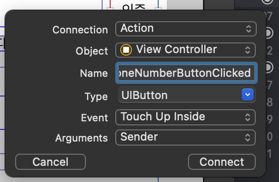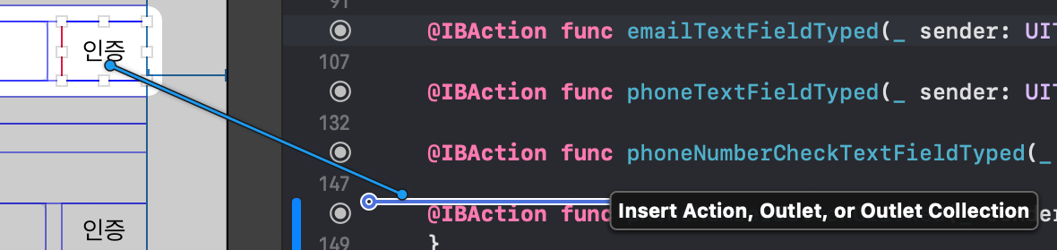 인증 UIButton을 control로 클릭한 후 IBAction 선언, connect 해보자