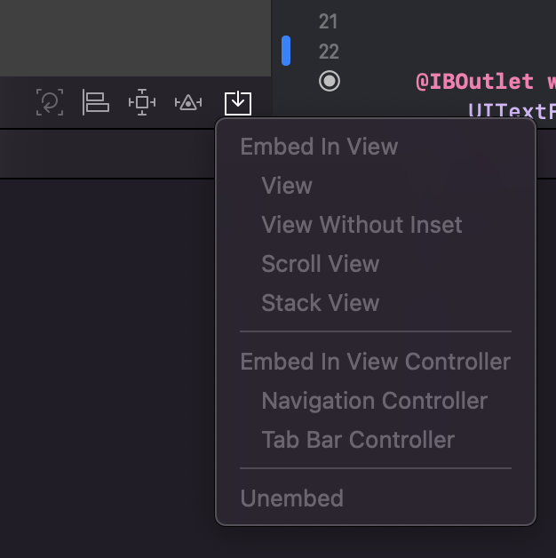 Interface Builder 오른쪽 하단에 보이는 네모안으로 들어가는 아래 화살표 아이콘을 선택하자