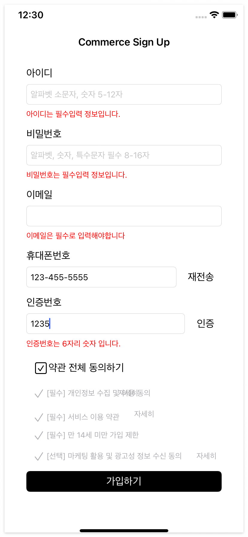 4. 형식에 맞지 않는 부분은 타이핑 하면서 실시간으로 textField 아래에서 알려주기
