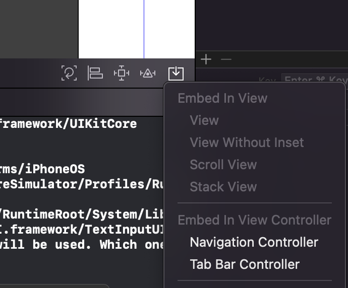 Interface Builder 오른쪽 하단 Embed in 버튼을 클릭하고, Navigation Controller를 클릭한다