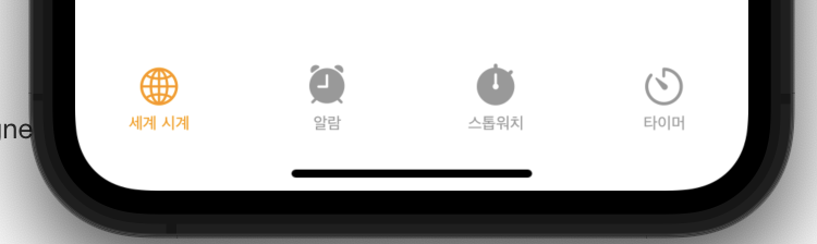 globe, alarm.fill, stopwatch.fill, timer를 사용하면 아래와 같이 기본 어플의 탭바 구성을 만들 수 있다