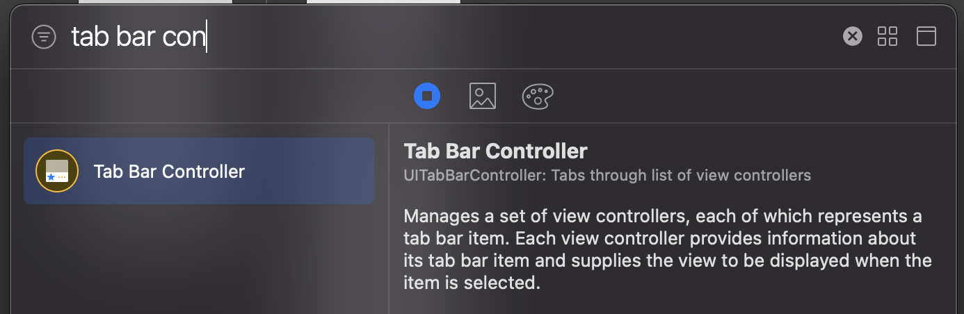 그 다음 Object Library에서 Tab Bar Controller를 Interface Builder로 드래그 앤 드랍해서 생성해주자