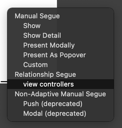 옵션 창에서 view controllers(Relationship Segue)를 클릭하면 3번째 탭으로 이어진 것을 볼 수 있다