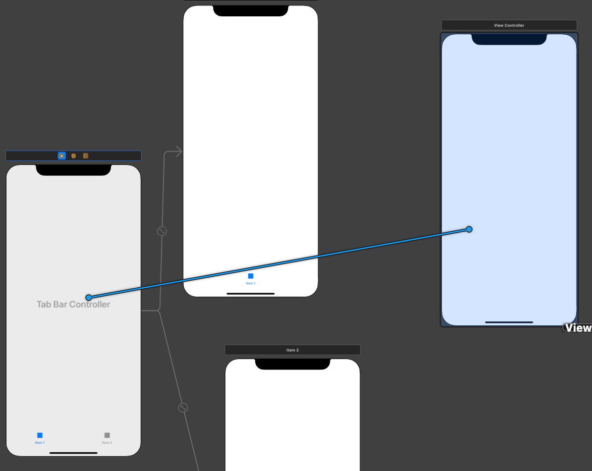 그 다음 Tab Bar Controller에서 새롭게 connect할 Controller로 control을 누른채 드래그 앤 드랍을 해보자