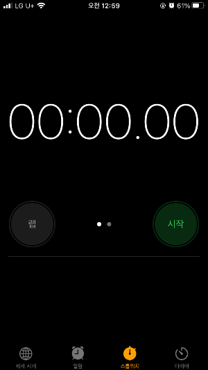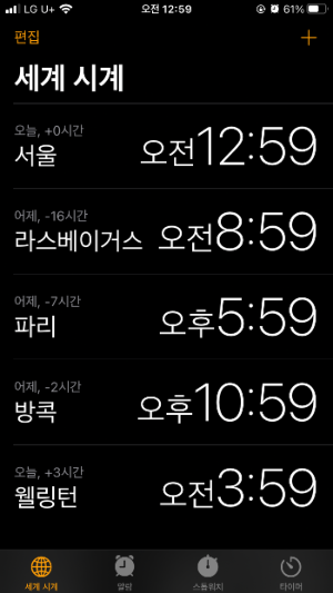 메뉴구성부터 보면 하단 Tab bar가 "세계 시계", "알람", "스톱워치", "타이머"로 되어 있다