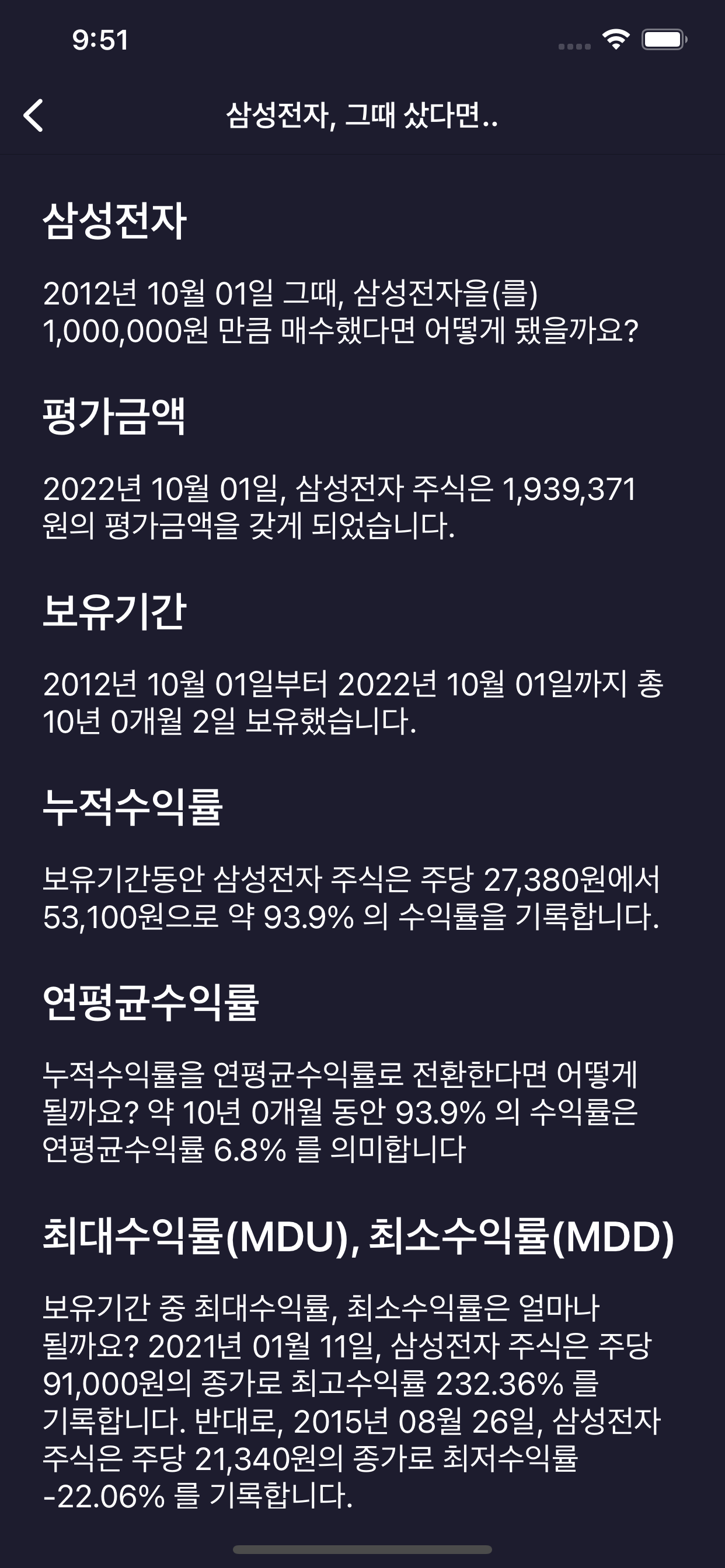 - 종목 가격에 따른 다른 설명 전달(MDD 시점에 따른 경제 위기 안내 등)