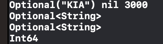 brand와 colors는 optional로, price는 Int64로 확인할 수 있습니다.